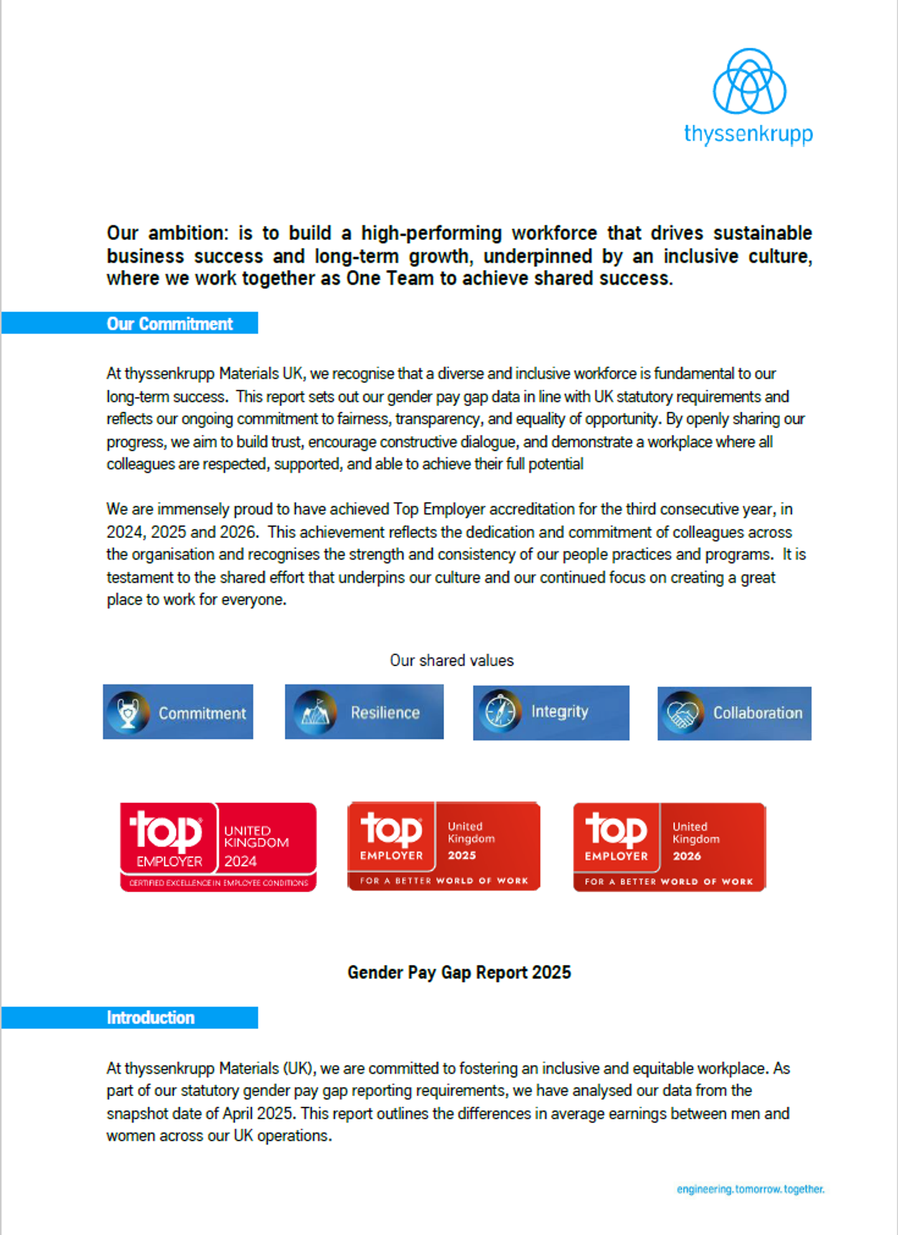 See below a Gender Pay Gap Report and learn about how we are working together as One Team to an ensure an inclusive culture where all employees are respected, feel valued and are supported to achieve their full potential.